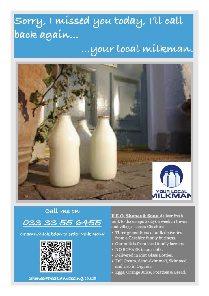 Shones Dairy 2days Mon/TueThu/FriFull Cream Milk £1.05Glass Pint £1.05Glass PintSemi Skim Milk £1.05Glass Pint £1.05Glass PintSkimmed Milk £1.05Glass Pint £1.05Glass PintOrange Juice £1.49Glass Pint £1.49Glass PintEggs Free Range x6 £1.901/2 Dozen £1.901/2 DozenChannel Island Milk (Gold Top) £1.10Glass Pint £1.10Glass PintOATO Oat Milk £1.40Glass Pint £1.40Glass PintOrganic Full Cream £1.15Glass Pint £1.15Glass PintOrganic Semi Skim £1.15Glass Pint £1.15Glass PintOrganic Skimmed £1.15Glass Pint £1.15Glass Pint Items: 0 Total: £0.00 0 Items, Total $0.00 Add to basket Share this: Click to share on Facebook (Opens in new window) Facebook Click to share on X (Opens in new window) X